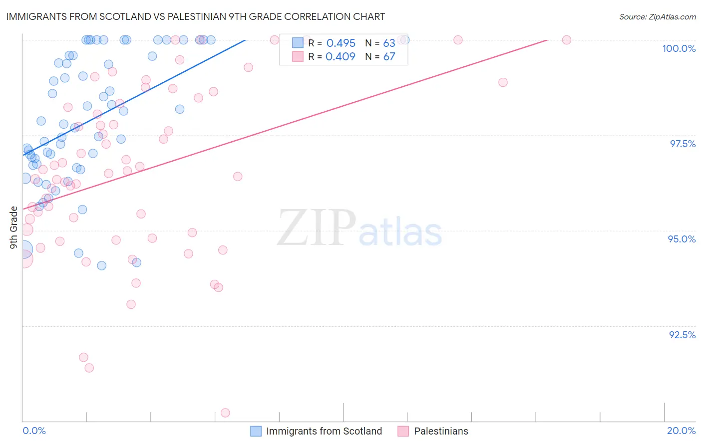 Immigrants from Scotland vs Palestinian 9th Grade Correlation Chart