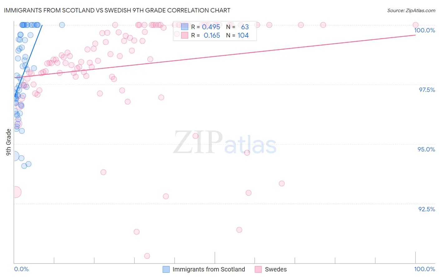 Immigrants from Scotland vs Swedish 9th Grade Correlation Chart