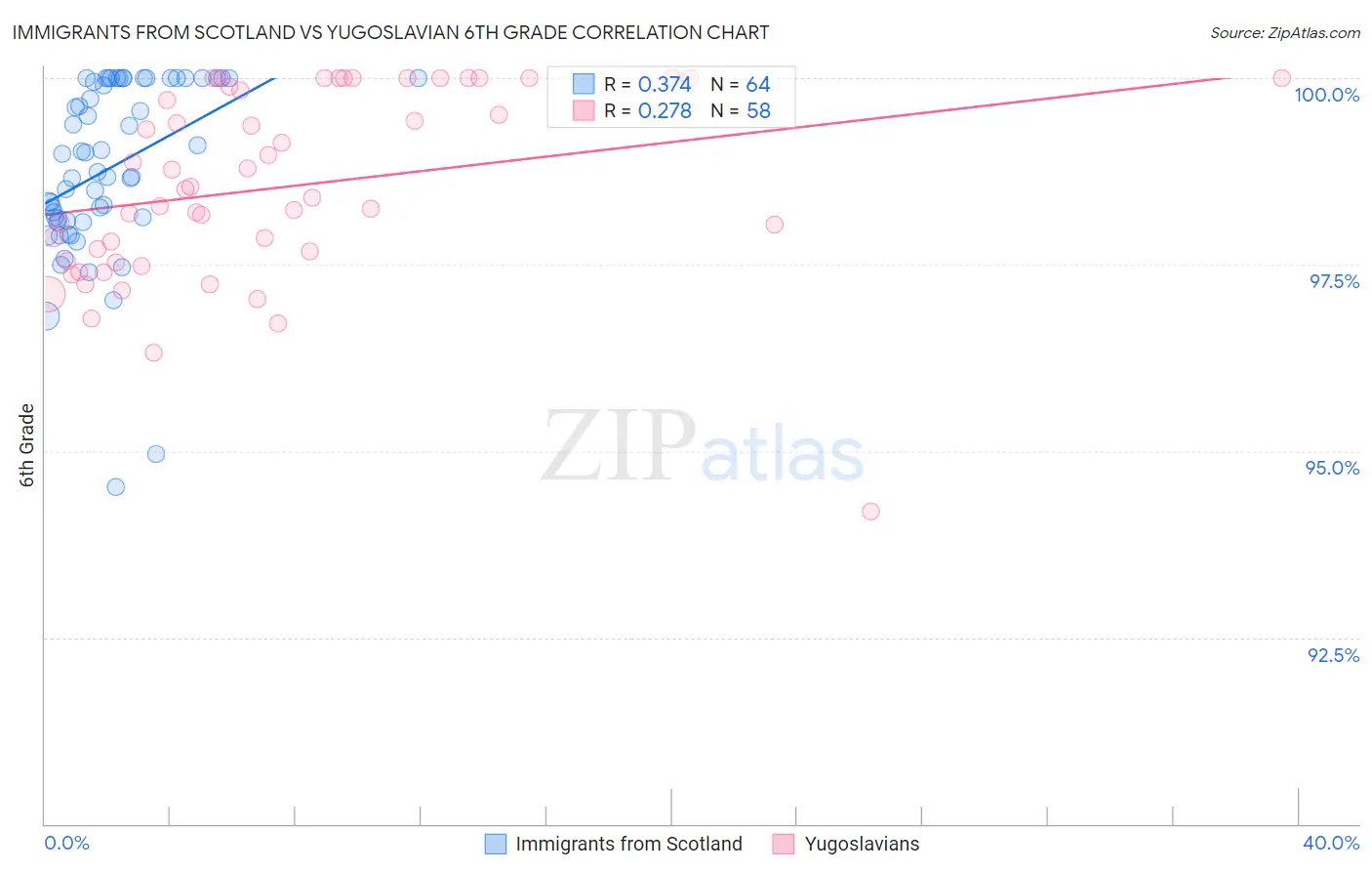 Immigrants from Scotland vs Yugoslavian 6th Grade Correlation Chart