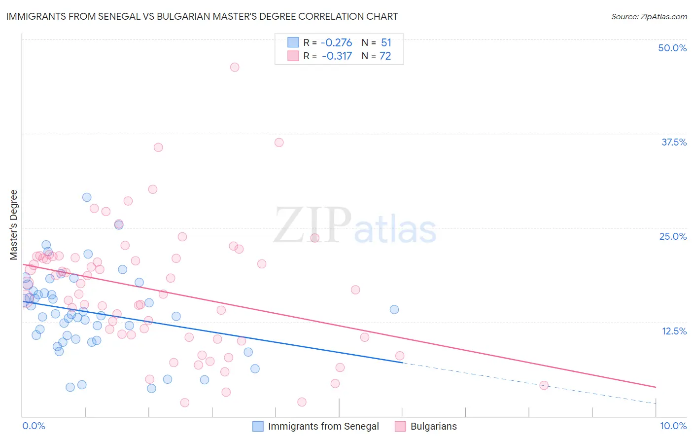 Immigrants from Senegal vs Bulgarian Master's Degree Correlation Chart