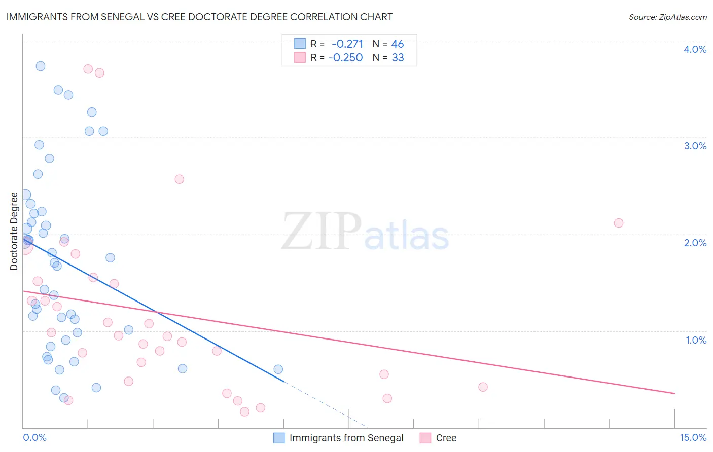 Immigrants from Senegal vs Cree Doctorate Degree Correlation Chart