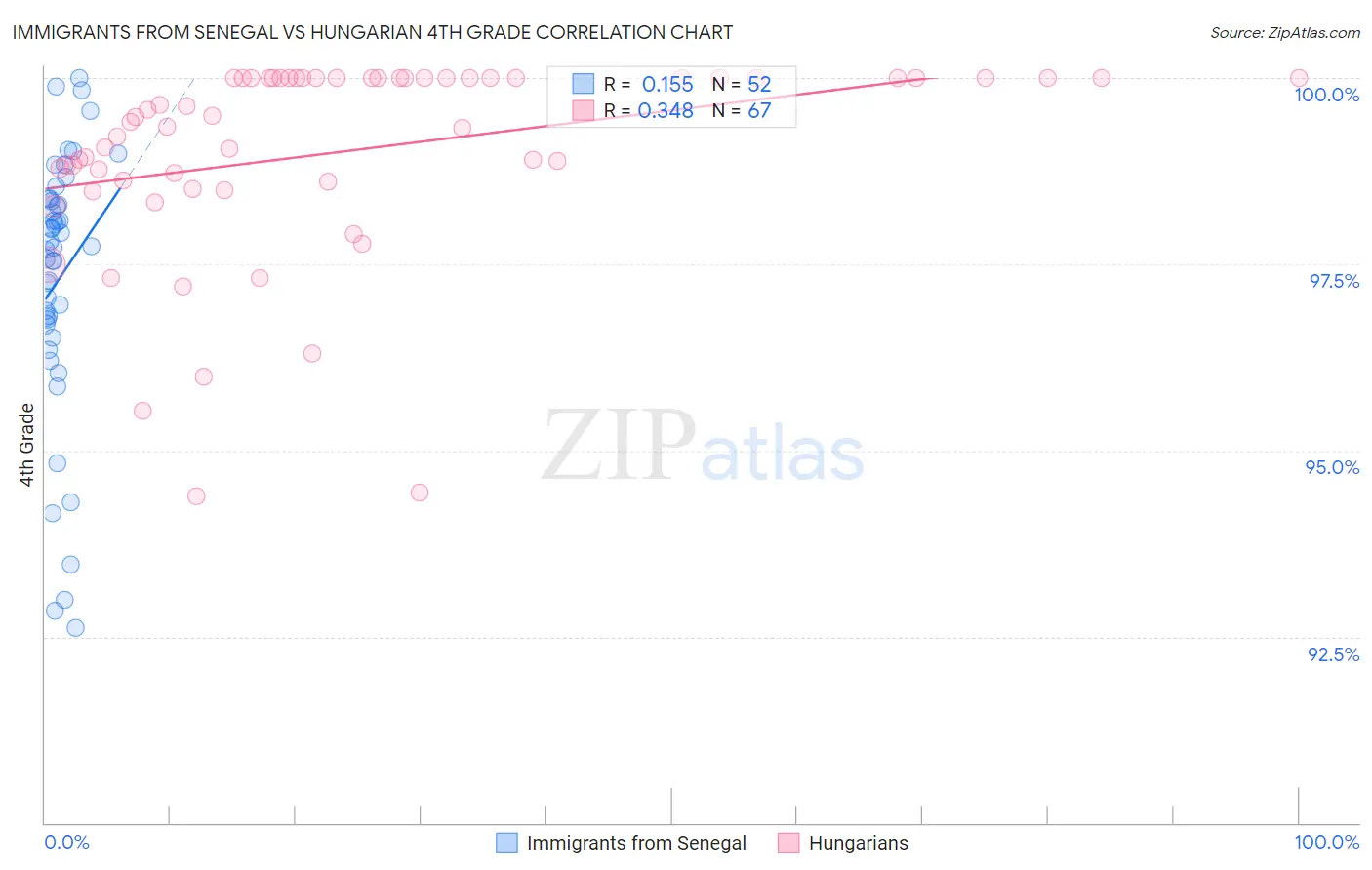 Immigrants from Senegal vs Hungarian 4th Grade Correlation Chart