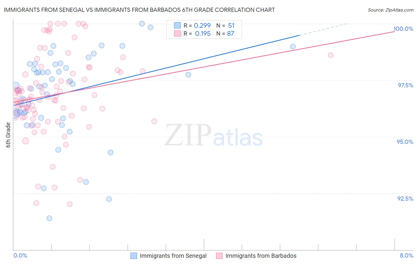 Immigrants from Senegal vs Immigrants from Barbados 6th Grade Correlation Chart