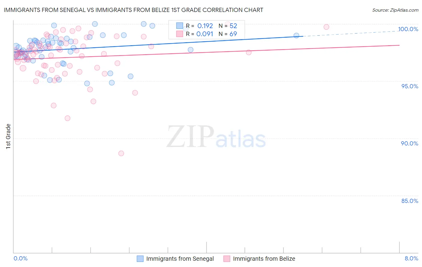 Immigrants from Senegal vs Immigrants from Belize 1st Grade Correlation Chart