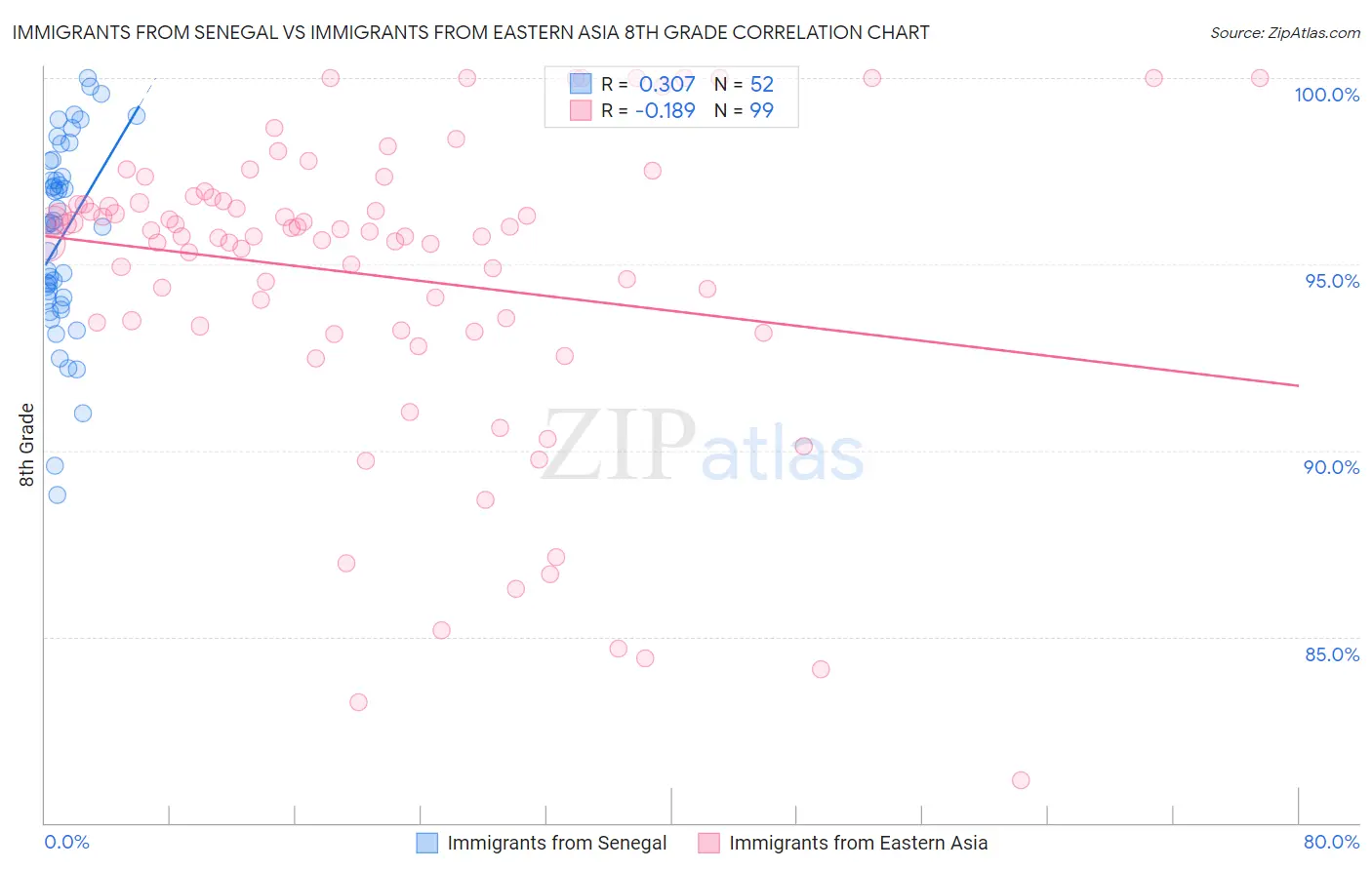 Immigrants from Senegal vs Immigrants from Eastern Asia 8th Grade Correlation Chart