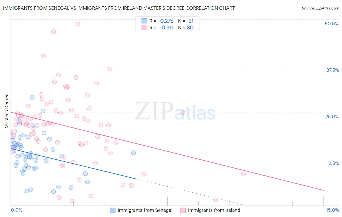 Immigrants from Senegal vs Immigrants from Ireland Master's Degree Correlation Chart