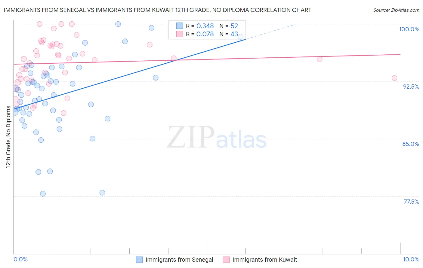 Immigrants from Senegal vs Immigrants from Kuwait 12th Grade, No Diploma Correlation Chart
