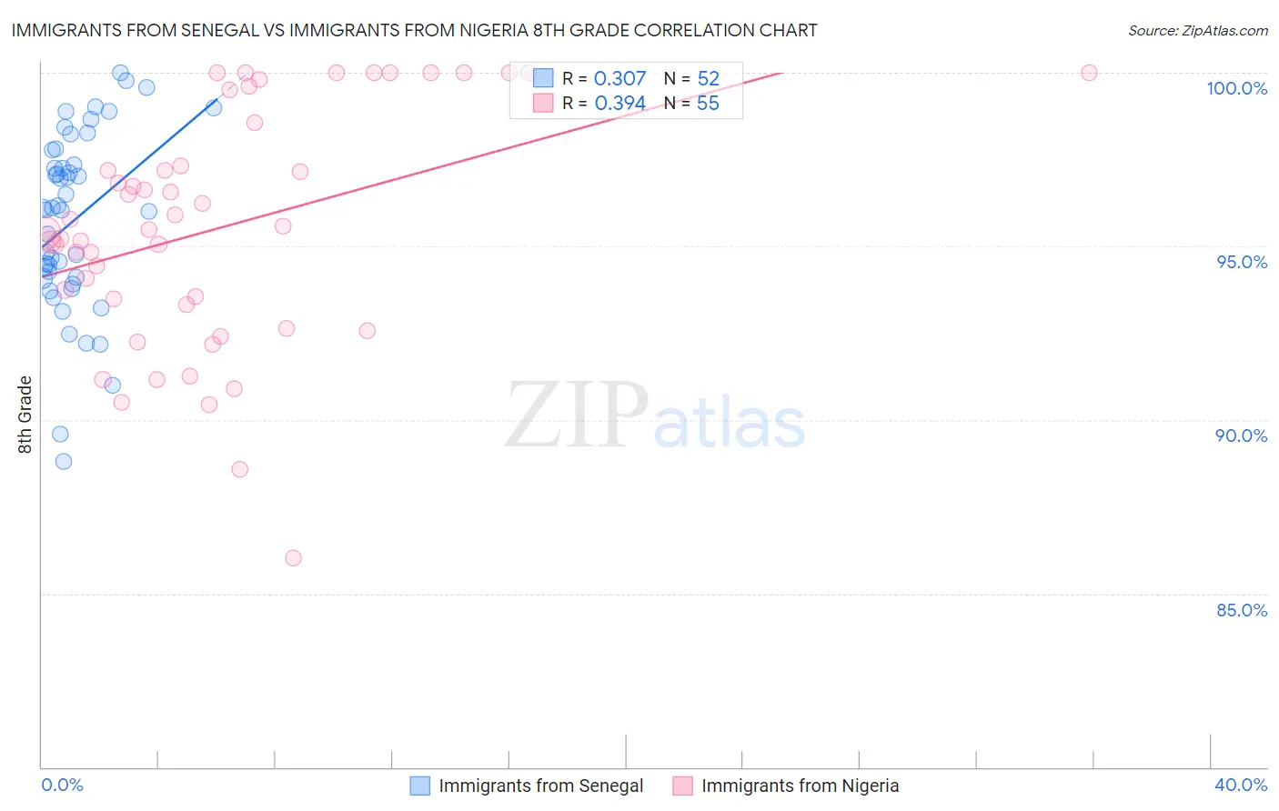 Immigrants from Senegal vs Immigrants from Nigeria 8th Grade Correlation Chart