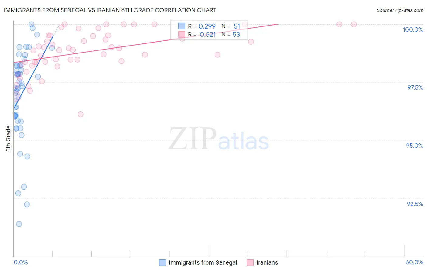 Immigrants from Senegal vs Iranian 6th Grade Correlation Chart