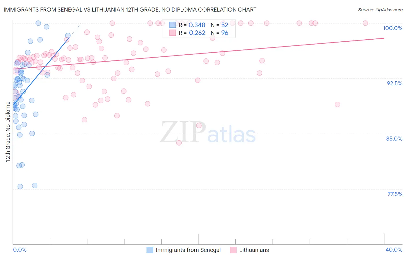 Immigrants from Senegal vs Lithuanian 12th Grade, No Diploma Correlation Chart