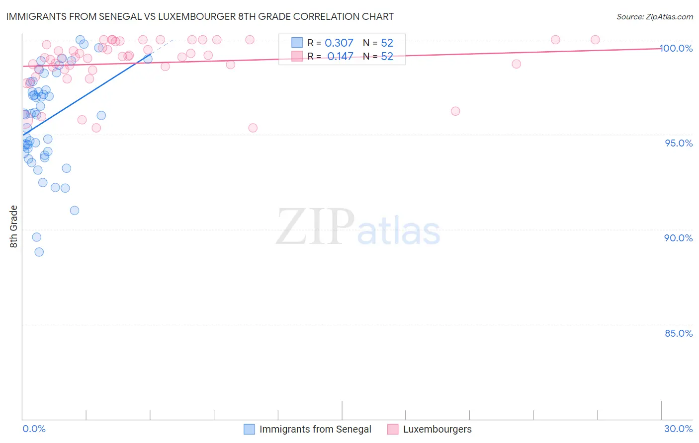 Immigrants from Senegal vs Luxembourger 8th Grade Correlation Chart