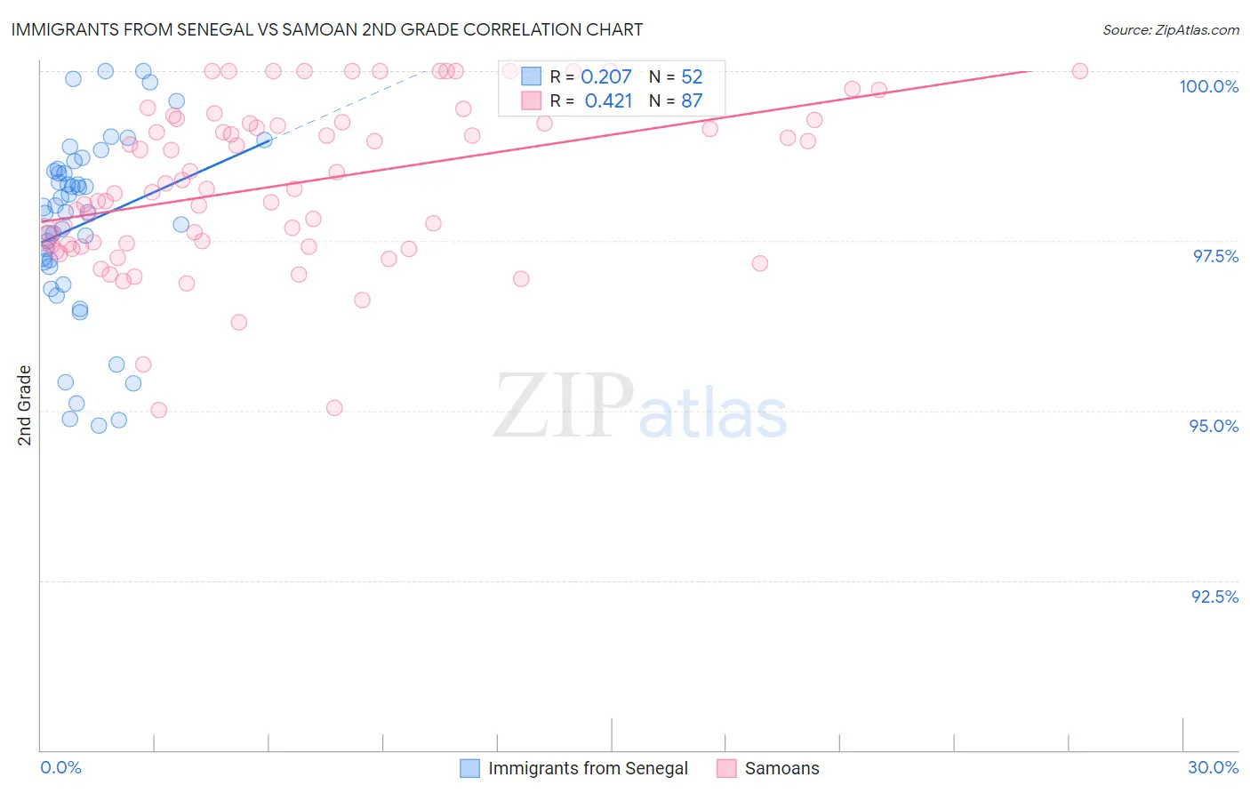 Immigrants from Senegal vs Samoan 2nd Grade Correlation Chart