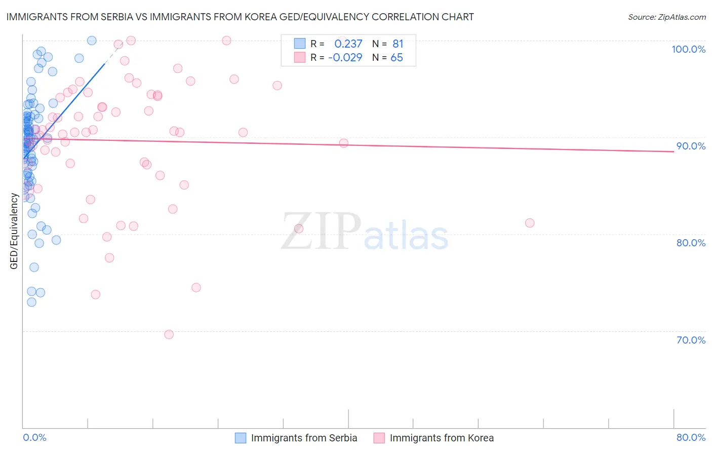 Immigrants from Serbia vs Immigrants from Korea GED/Equivalency Correlation Chart