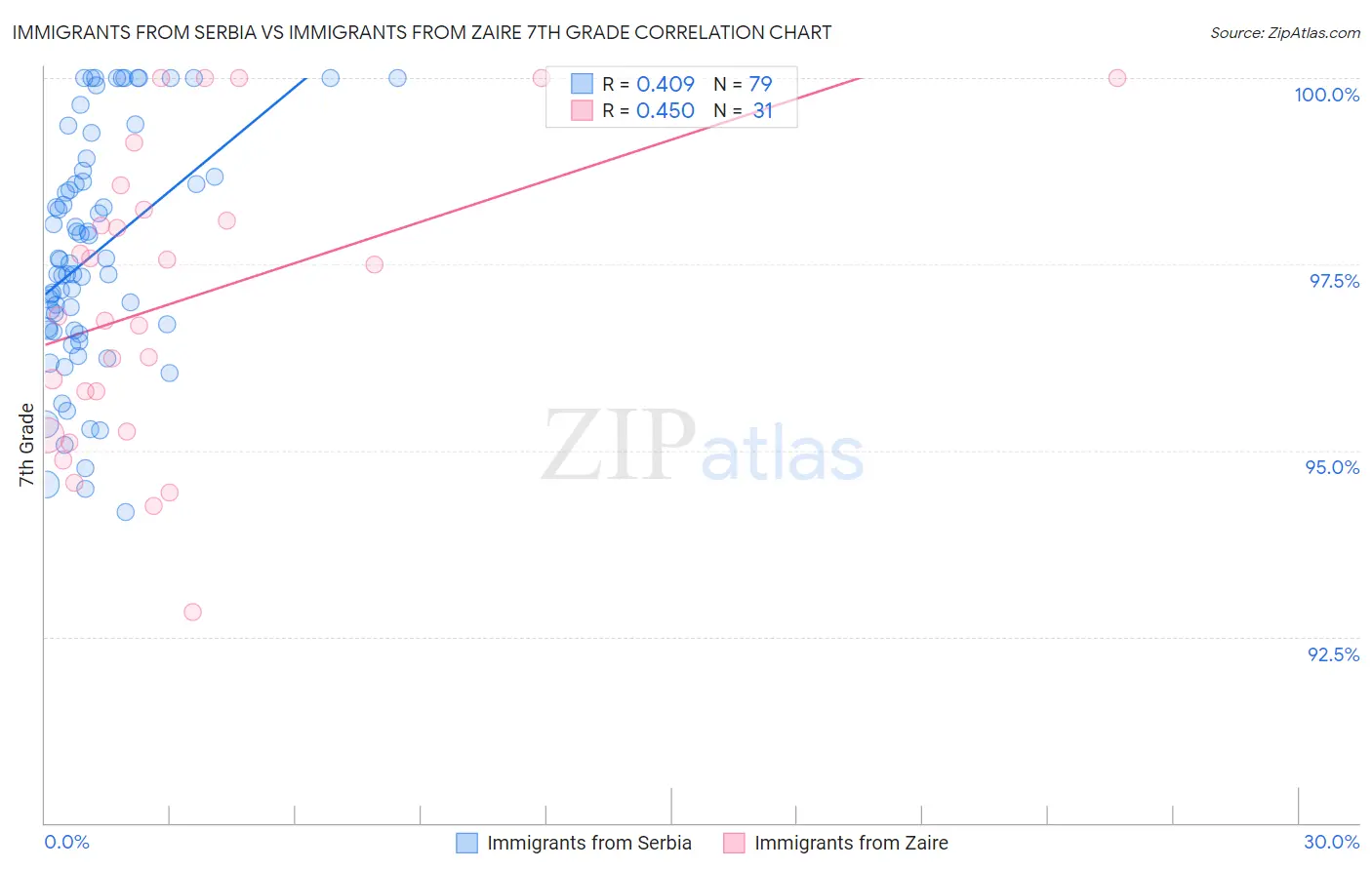 Immigrants from Serbia vs Immigrants from Zaire 7th Grade Correlation Chart