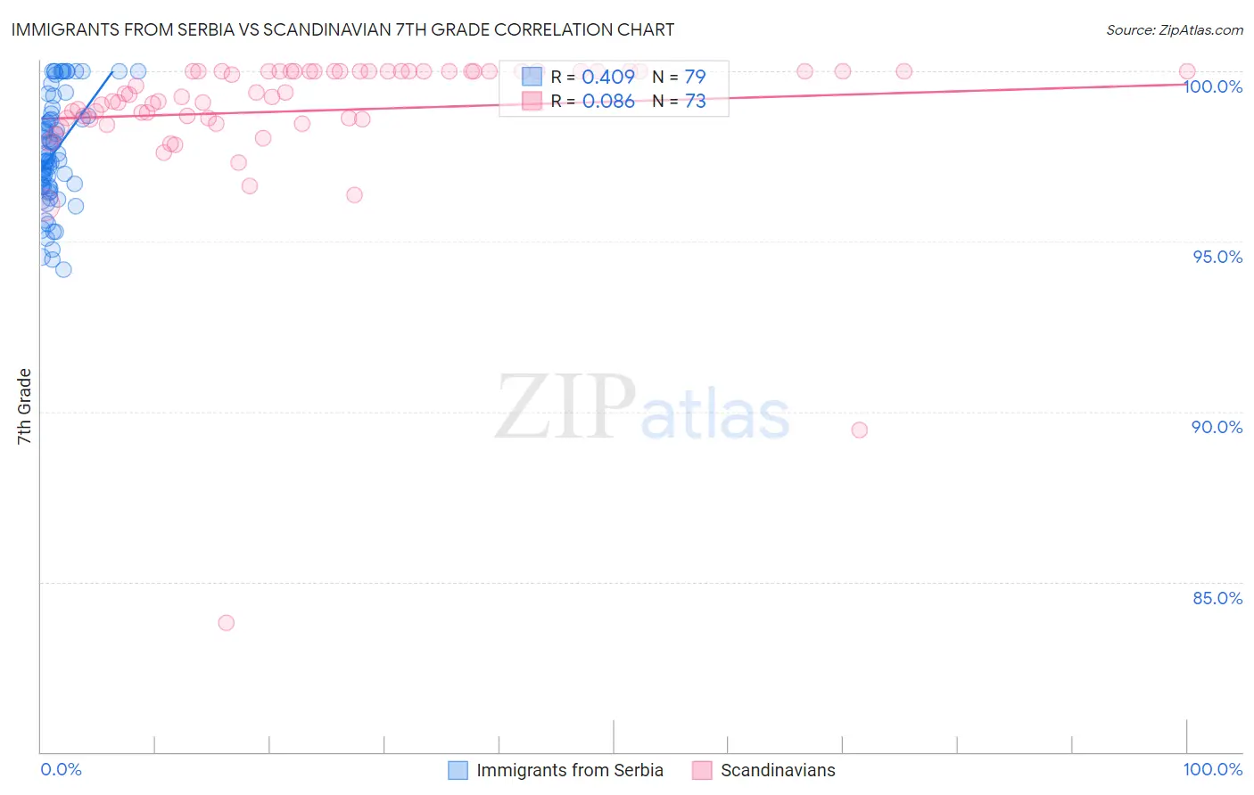 Immigrants from Serbia vs Scandinavian 7th Grade Correlation Chart