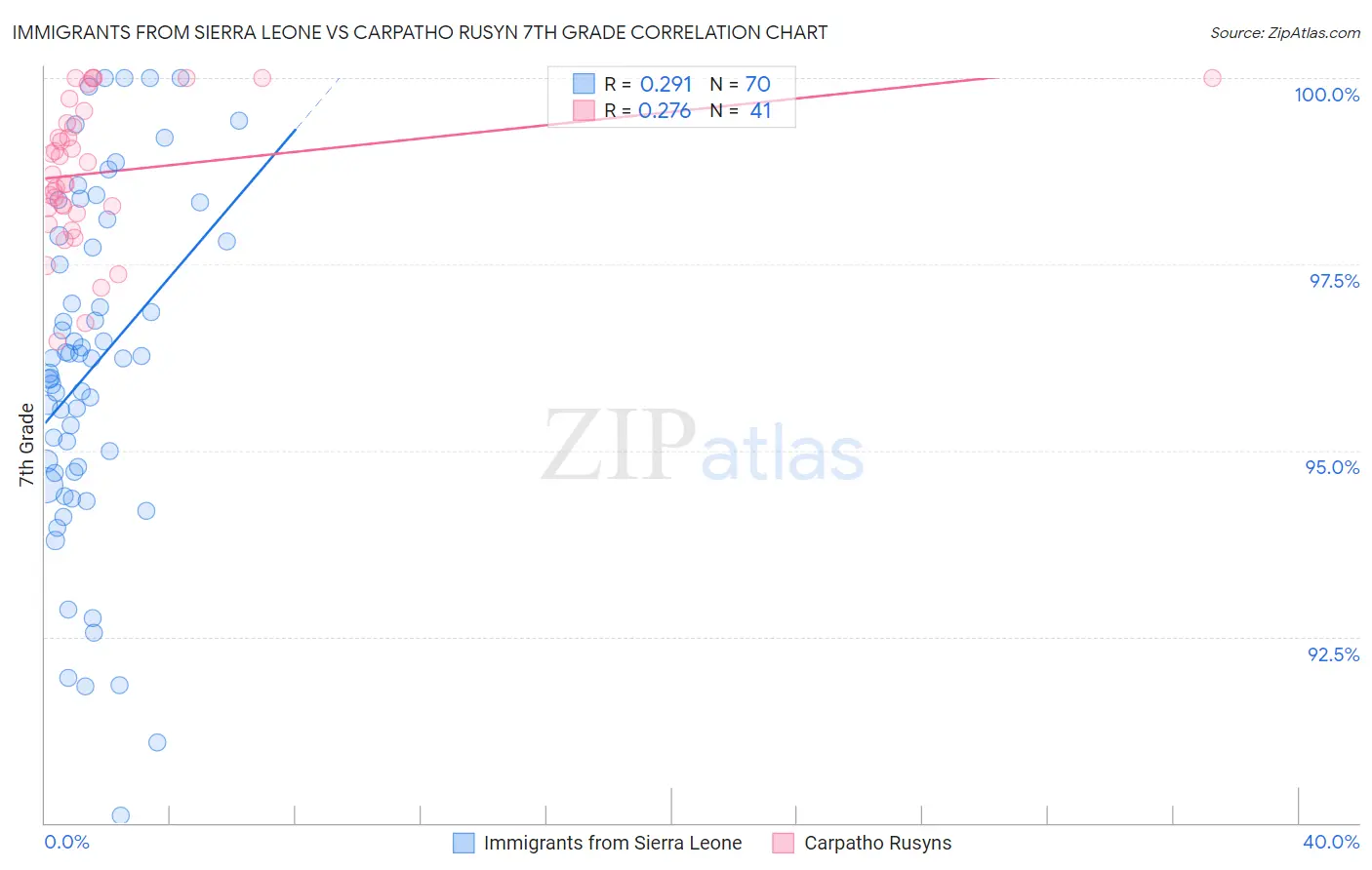 Immigrants from Sierra Leone vs Carpatho Rusyn 7th Grade Correlation Chart