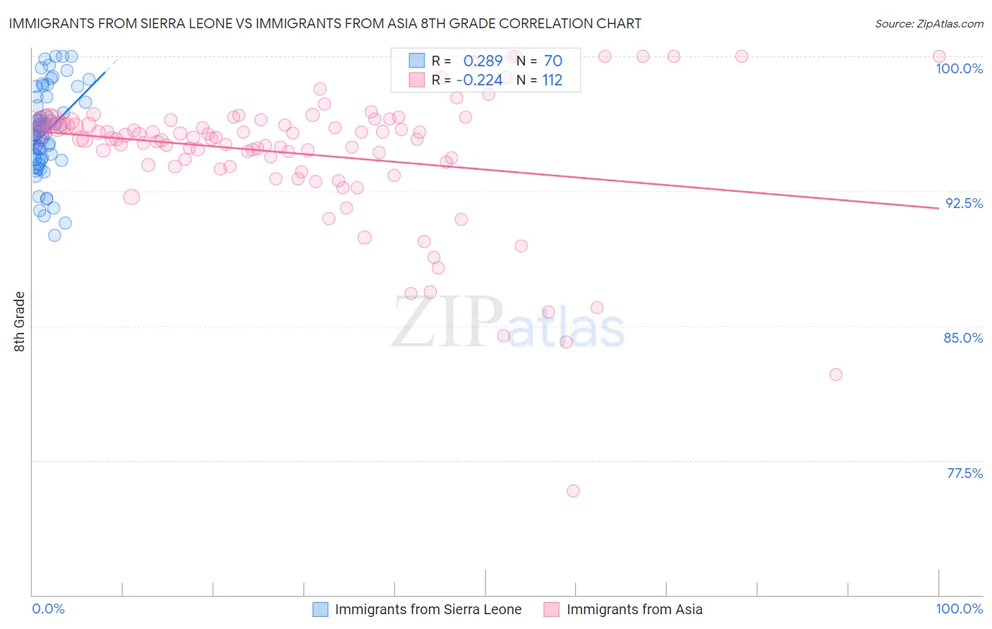 Immigrants from Sierra Leone vs Immigrants from Asia 8th Grade Correlation Chart