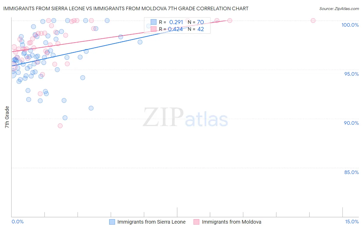 Immigrants from Sierra Leone vs Immigrants from Moldova 7th Grade Correlation Chart