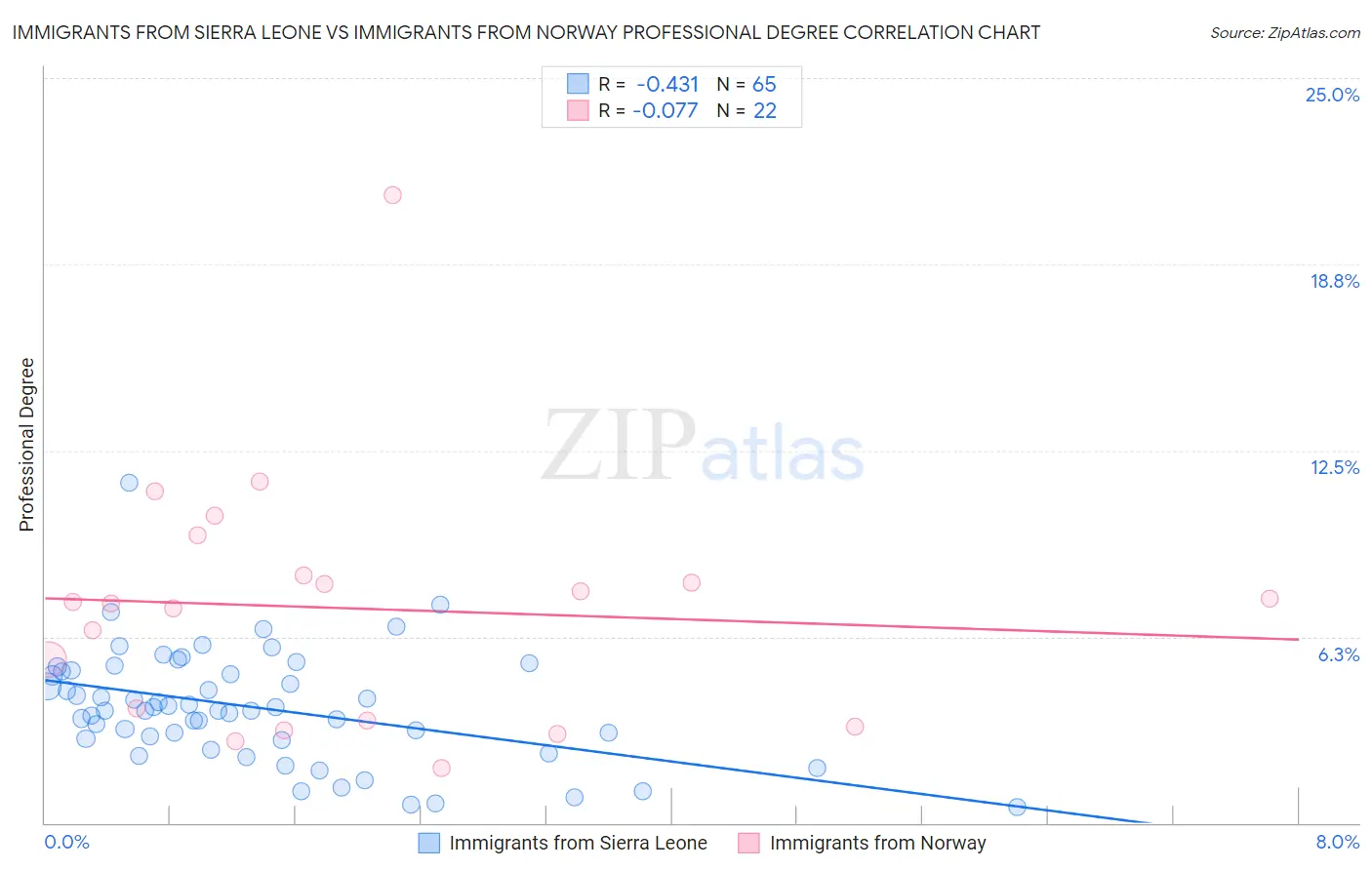 Immigrants from Sierra Leone vs Immigrants from Norway Professional Degree Correlation Chart