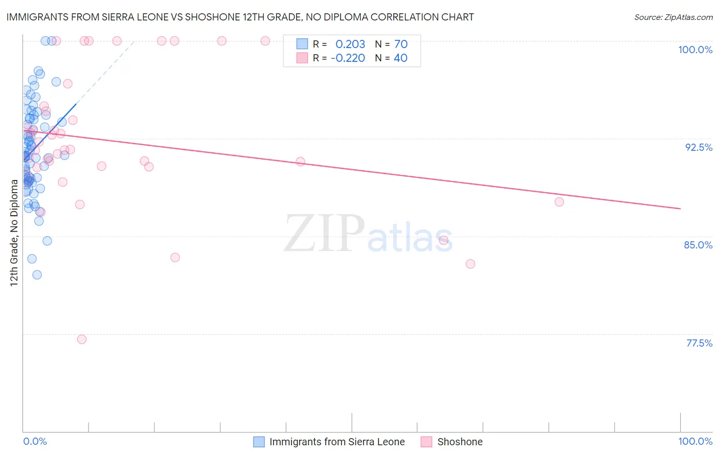 Immigrants from Sierra Leone vs Shoshone 12th Grade, No Diploma Correlation Chart