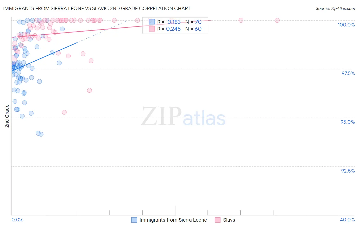 Immigrants from Sierra Leone vs Slavic 2nd Grade Correlation Chart