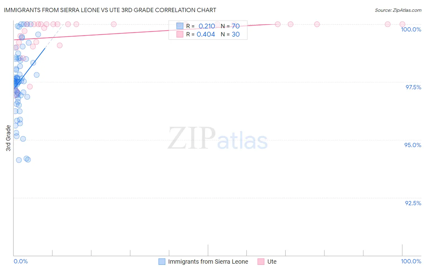 Immigrants from Sierra Leone vs Ute 3rd Grade Correlation Chart
