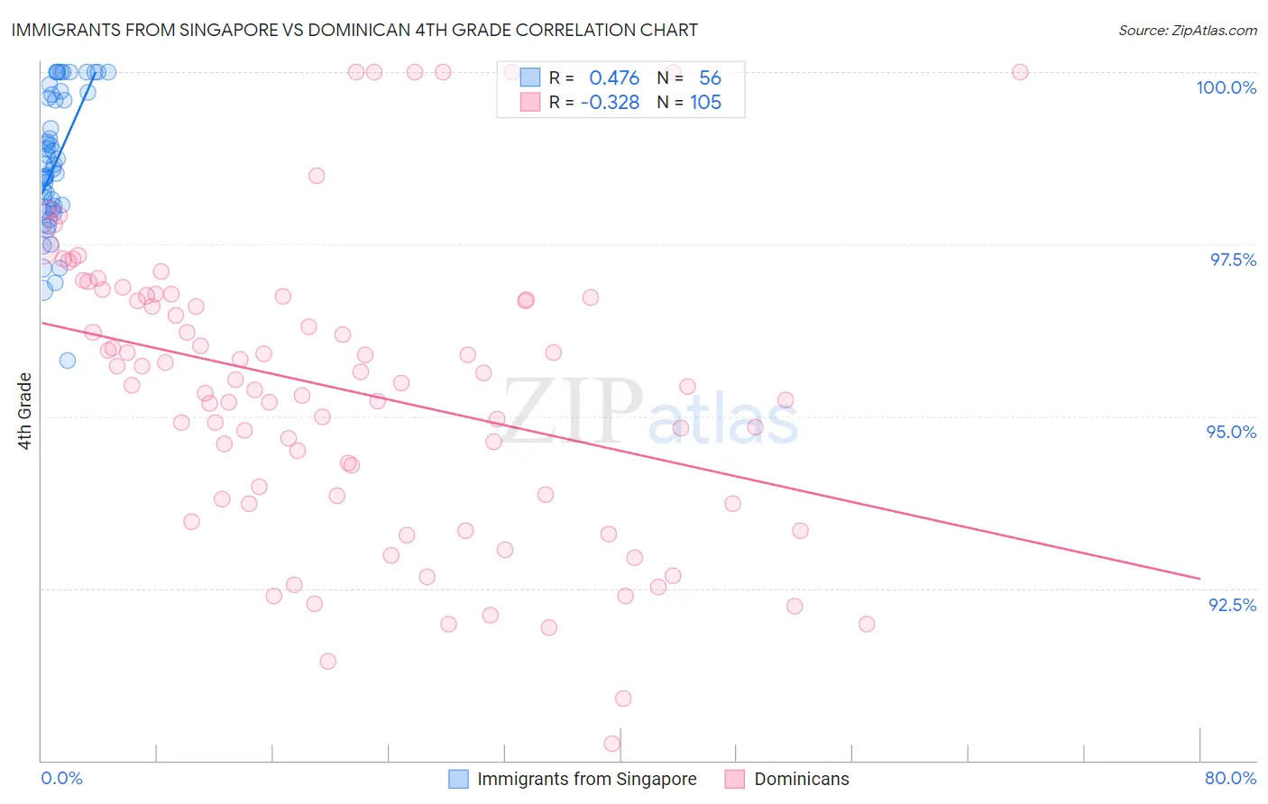 Immigrants from Singapore vs Dominican 4th Grade Correlation Chart