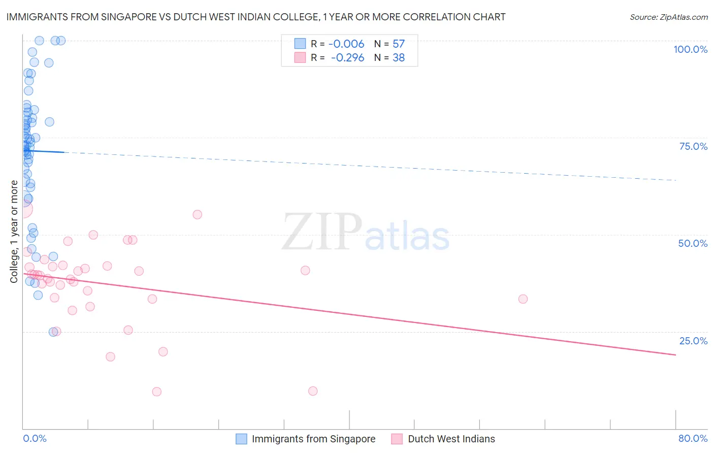 Immigrants from Singapore vs Dutch West Indian College, 1 year or more Correlation Chart