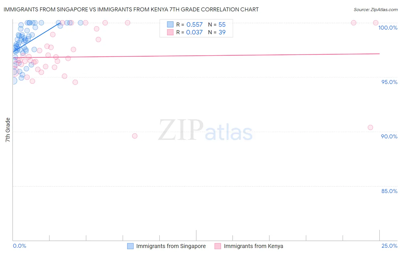 Immigrants from Singapore vs Immigrants from Kenya 7th Grade Correlation Chart