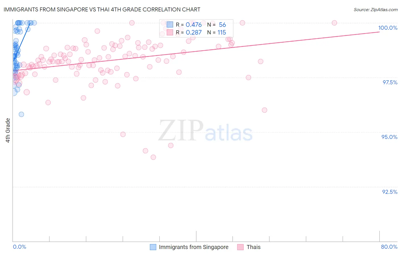 Immigrants from Singapore vs Thai 4th Grade Correlation Chart