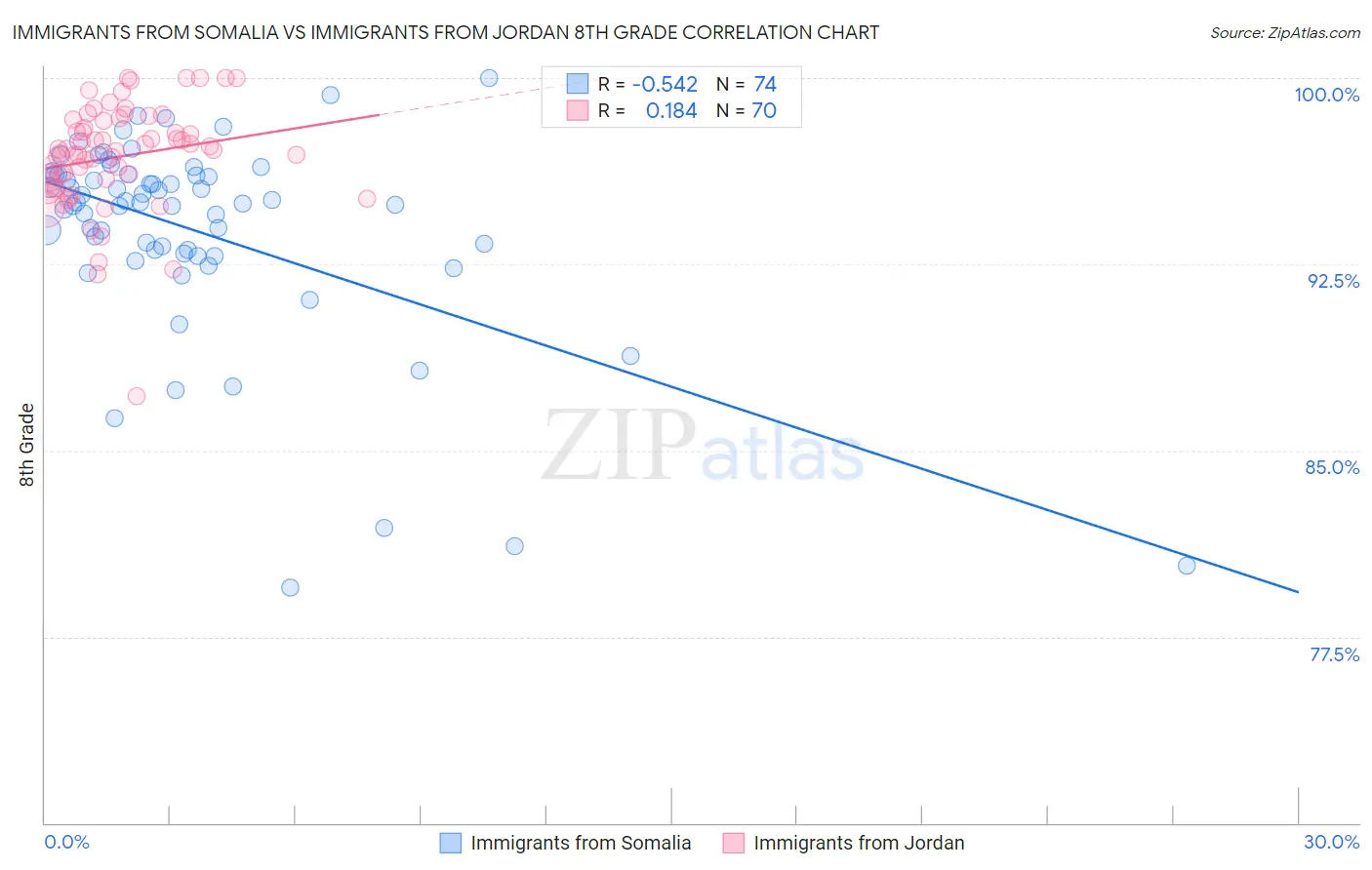 Immigrants from Somalia vs Immigrants from Jordan 8th Grade Correlation Chart
