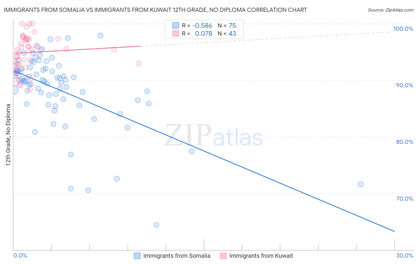Immigrants from Somalia vs Immigrants from Kuwait 12th Grade, No Diploma Correlation Chart