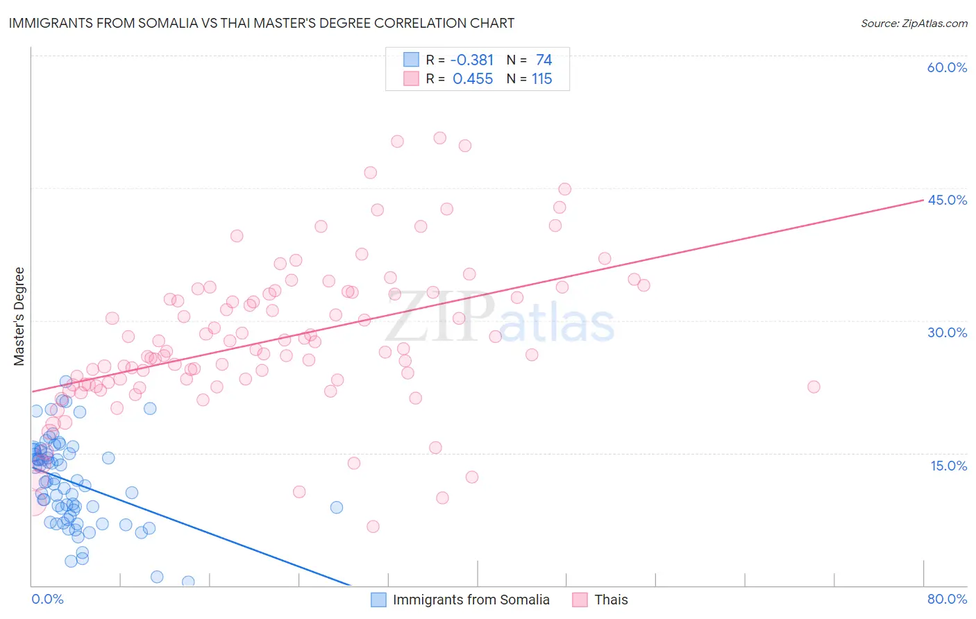 Immigrants from Somalia vs Thai Master's Degree Correlation Chart