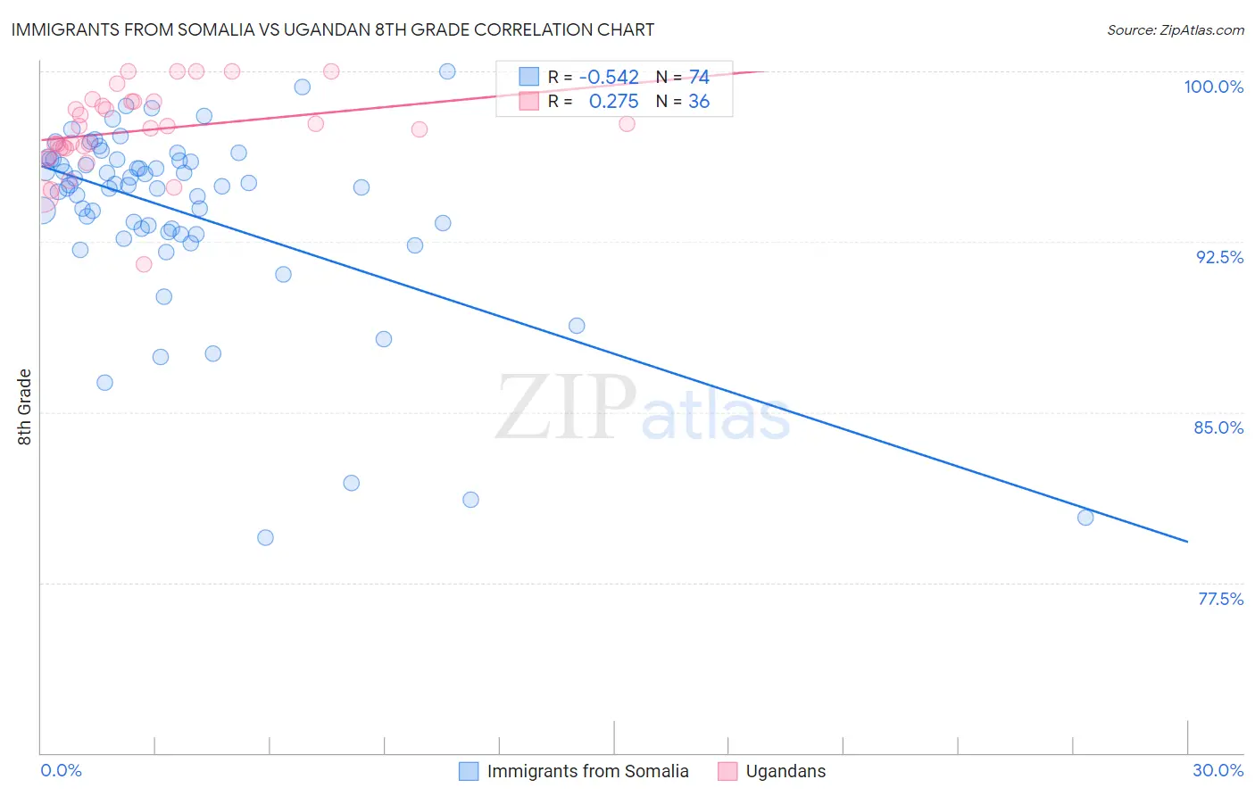 Immigrants from Somalia vs Ugandan 8th Grade Correlation Chart