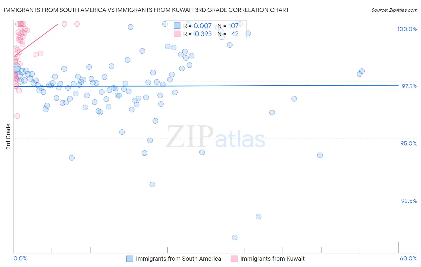 Immigrants from South America vs Immigrants from Kuwait 3rd Grade Correlation Chart