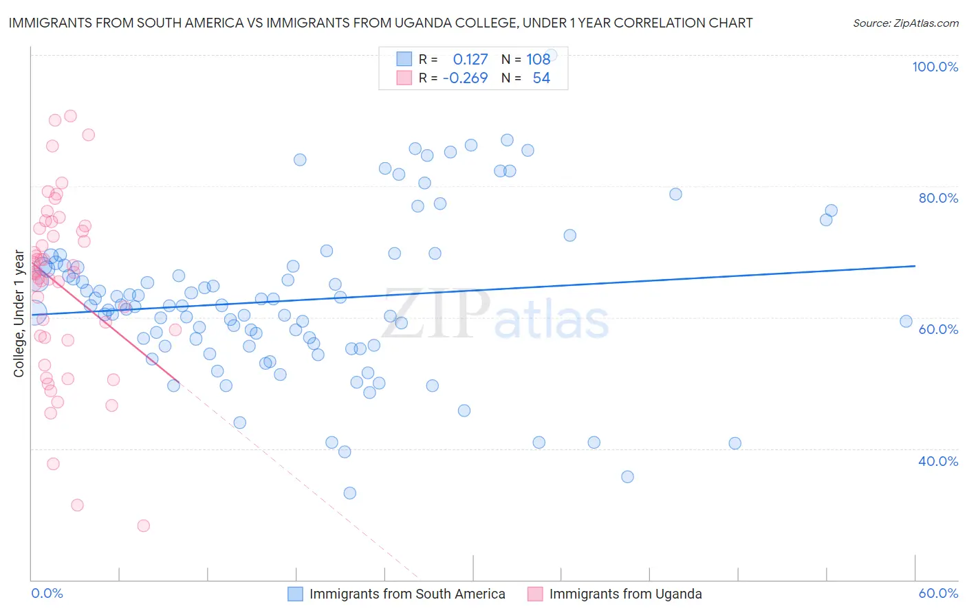 Immigrants from South America vs Immigrants from Uganda College, Under 1 year Correlation Chart