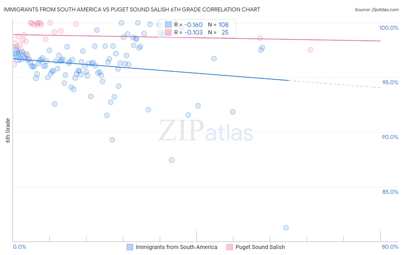 Immigrants from South America vs Puget Sound Salish 6th Grade Correlation Chart