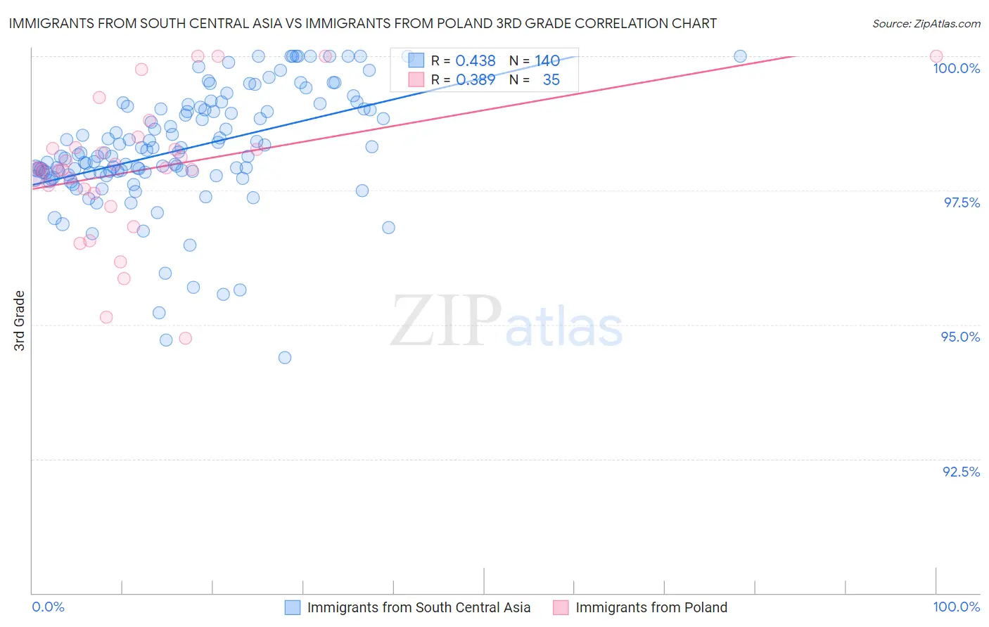 Immigrants from South Central Asia vs Immigrants from Poland 3rd Grade Correlation Chart