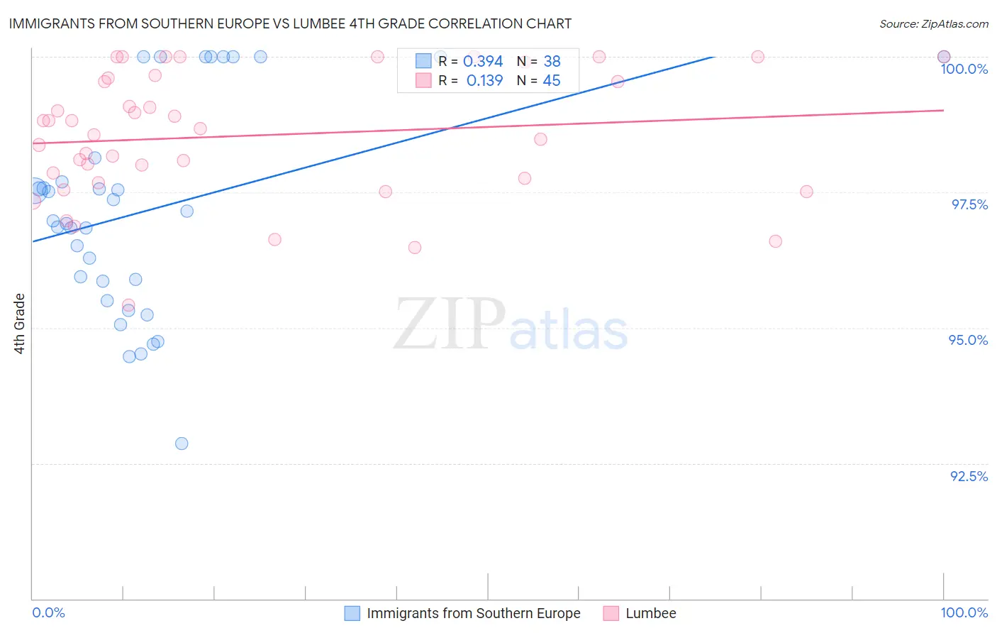 Immigrants from Southern Europe vs Lumbee 4th Grade Correlation Chart