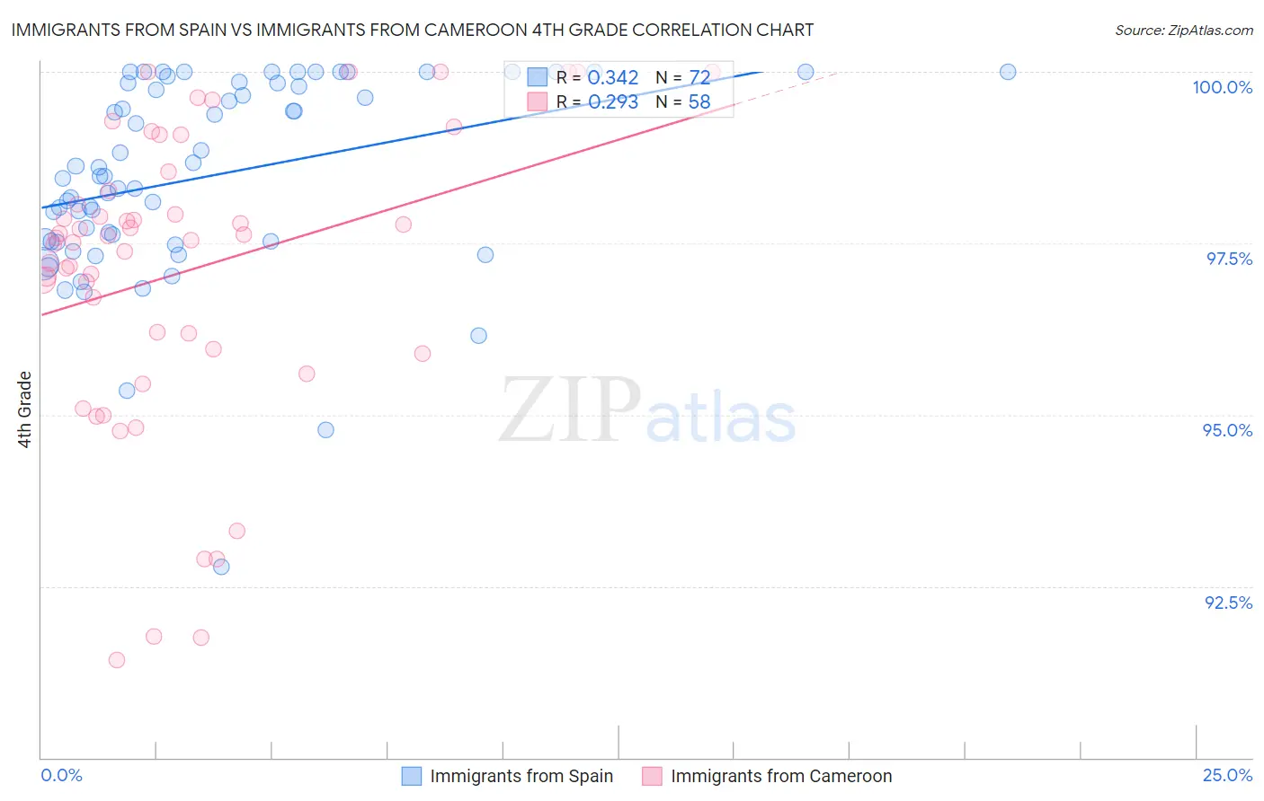 Immigrants from Spain vs Immigrants from Cameroon 4th Grade Correlation Chart