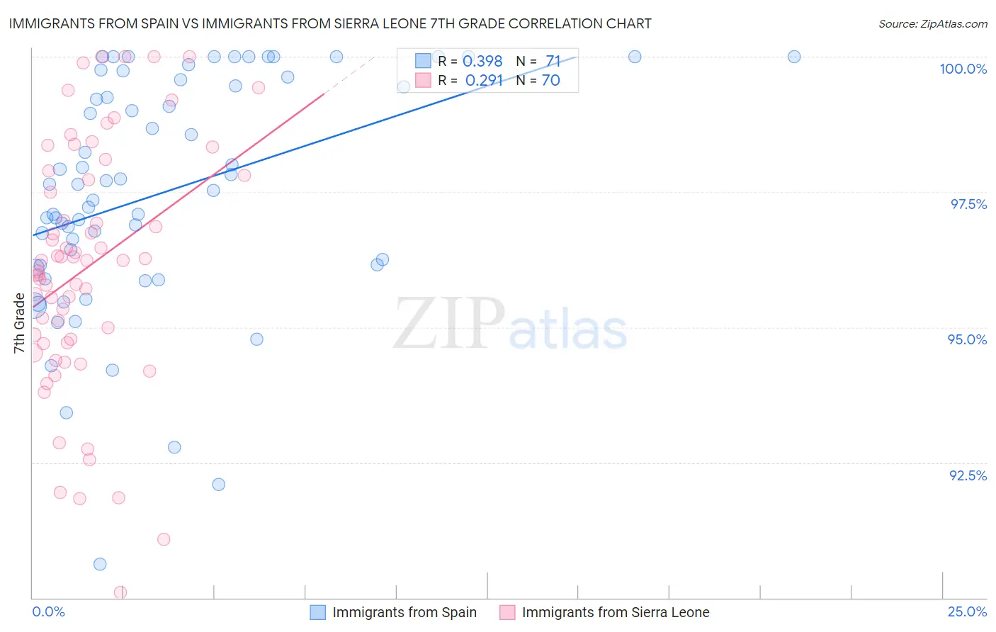 Immigrants from Spain vs Immigrants from Sierra Leone 7th Grade Correlation Chart