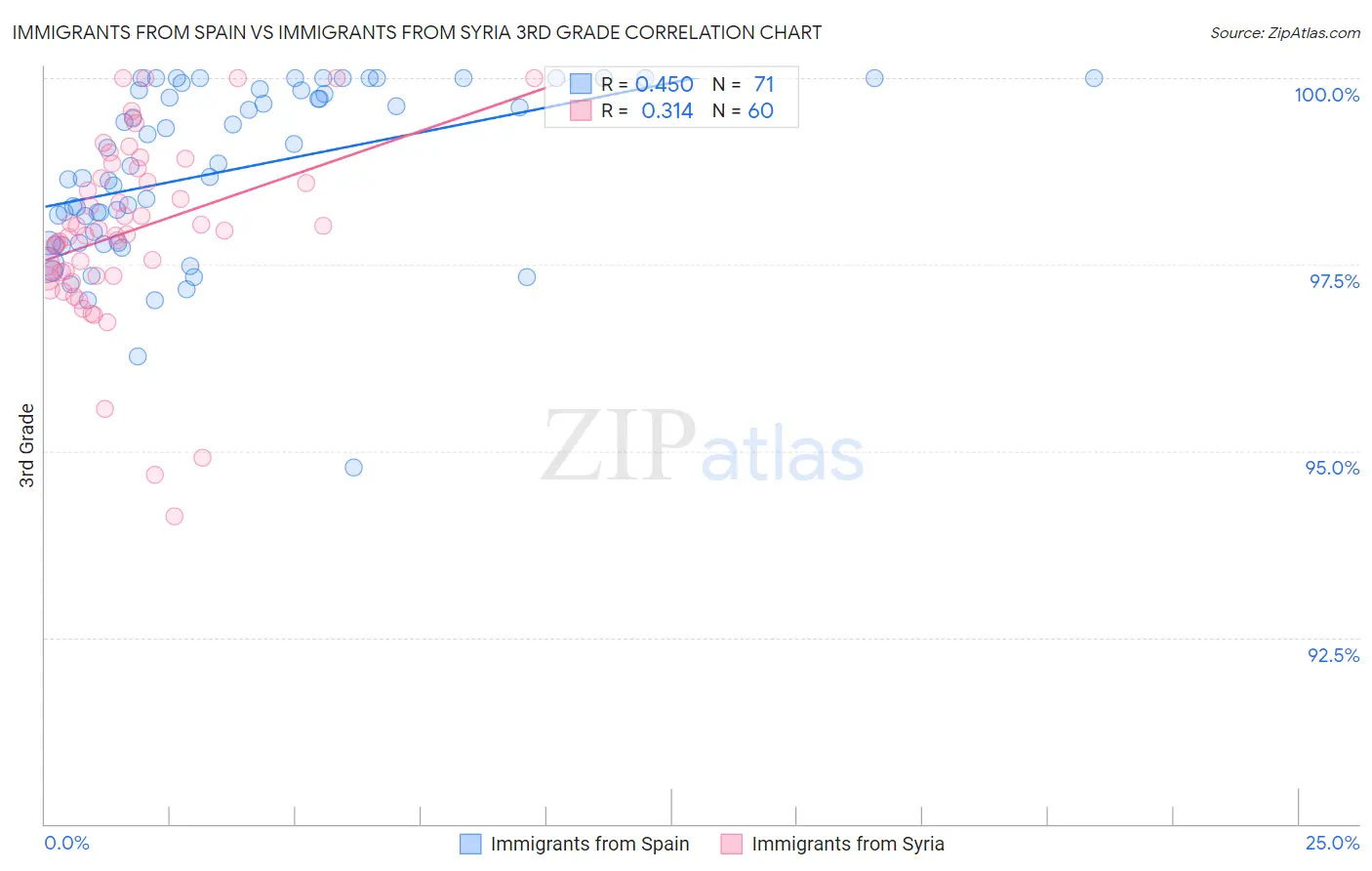 Immigrants from Spain vs Immigrants from Syria 3rd Grade Correlation Chart