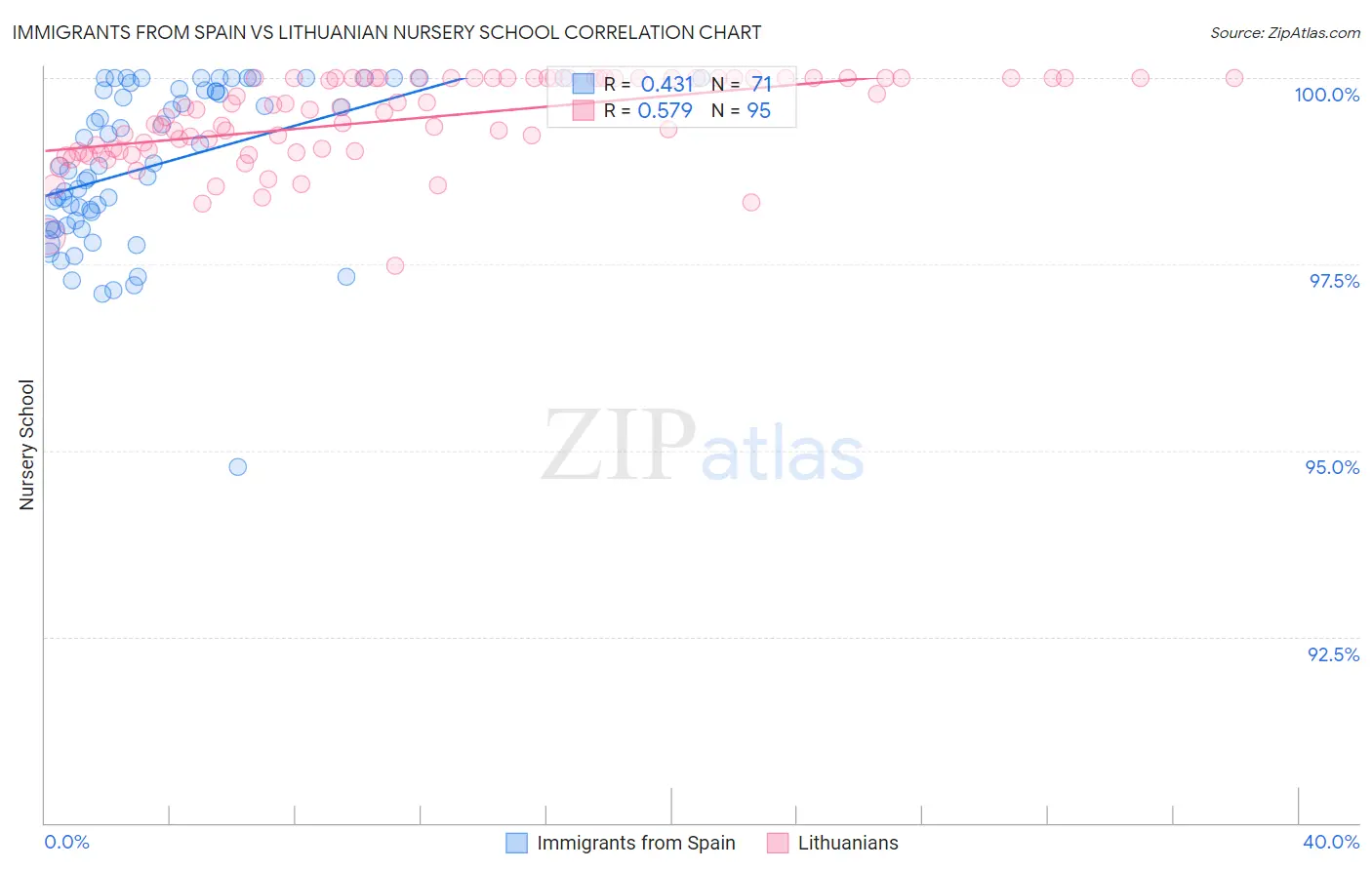 Immigrants from Spain vs Lithuanian Nursery School Correlation Chart