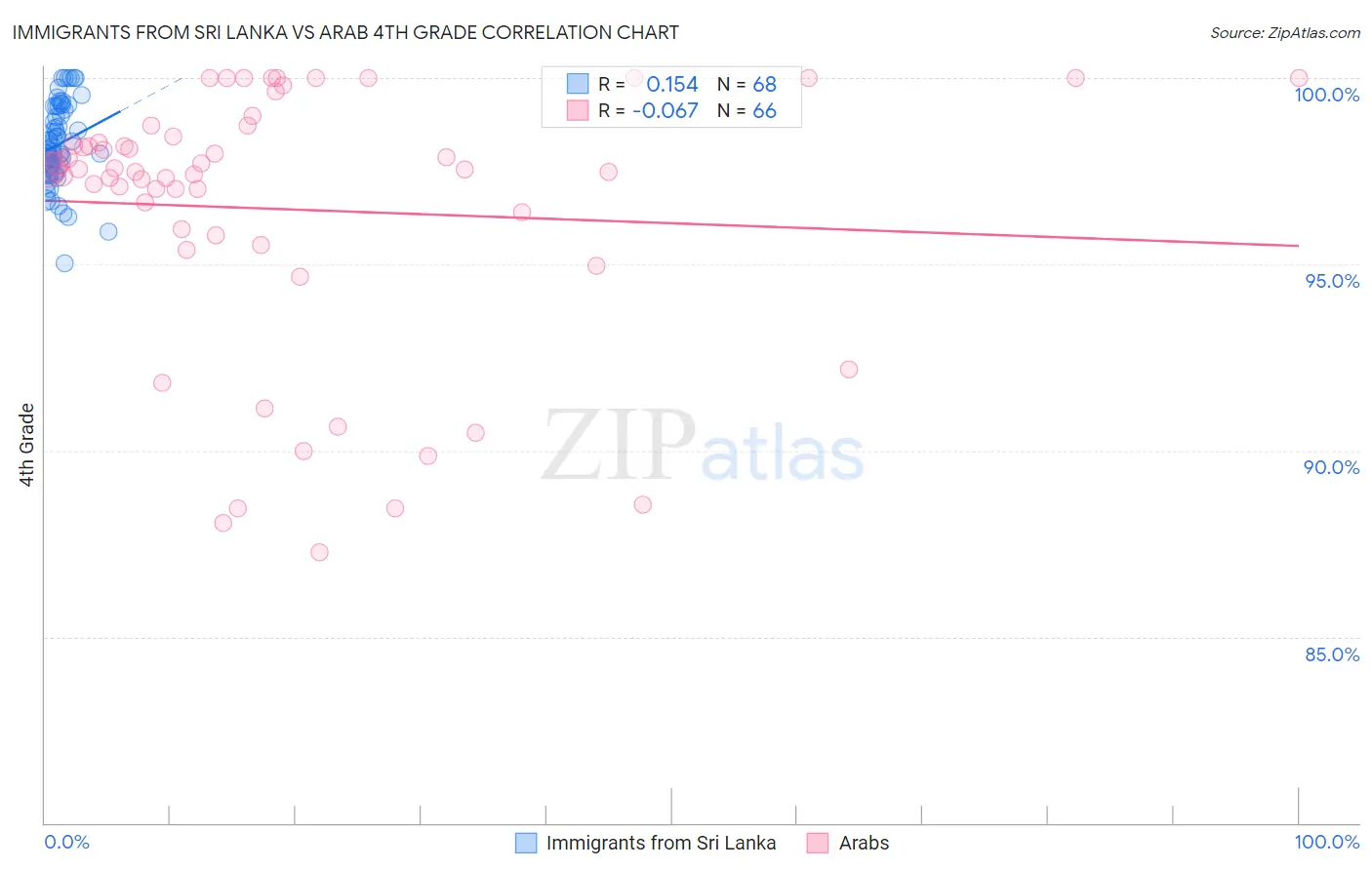 Immigrants from Sri Lanka vs Arab 4th Grade Correlation Chart