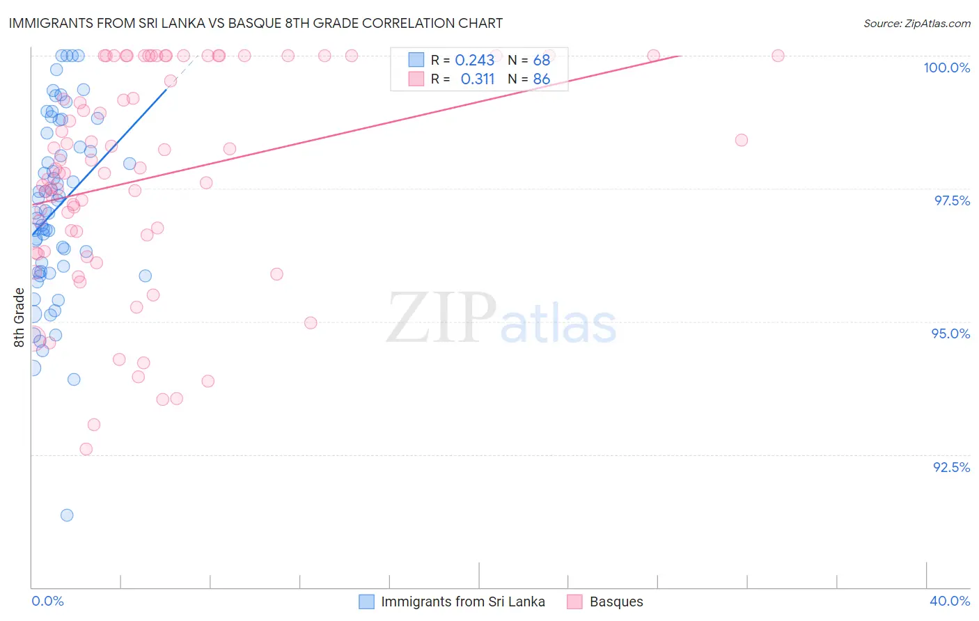 Immigrants from Sri Lanka vs Basque 8th Grade Correlation Chart