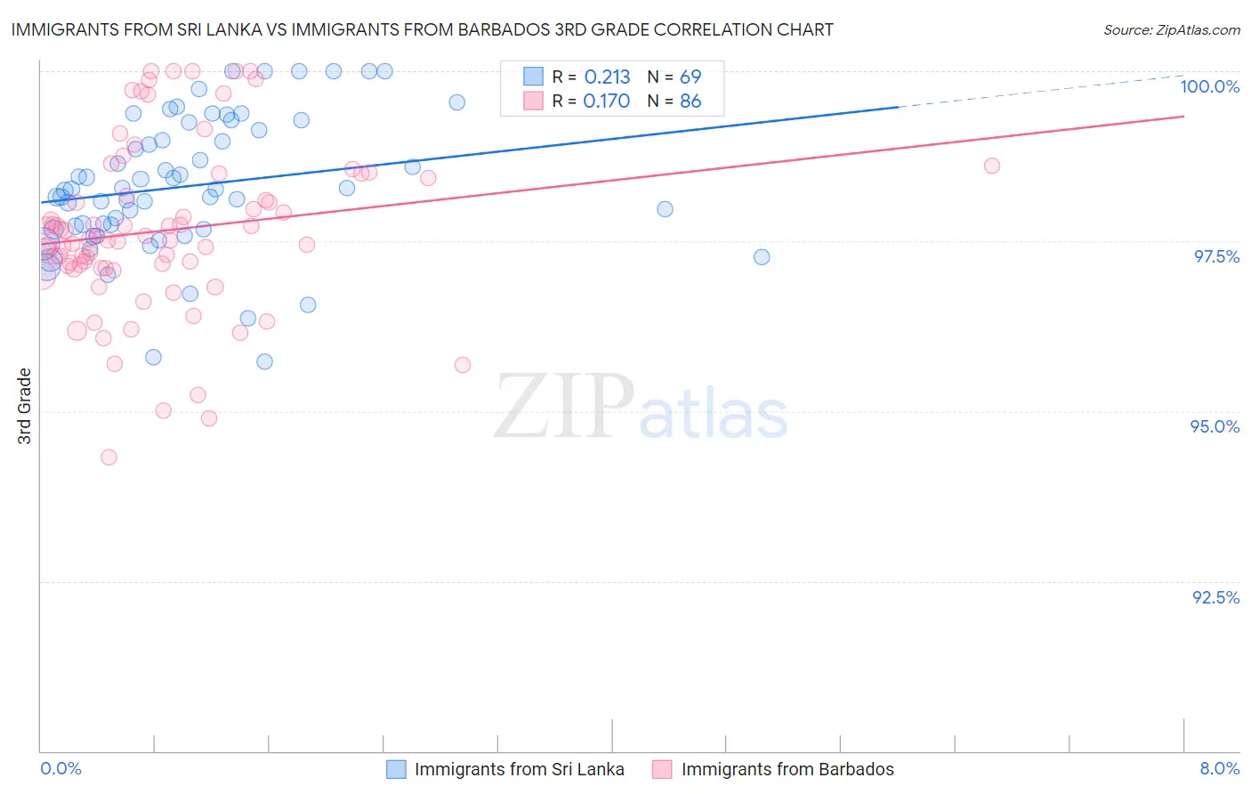 Immigrants from Sri Lanka vs Immigrants from Barbados 3rd Grade Correlation Chart