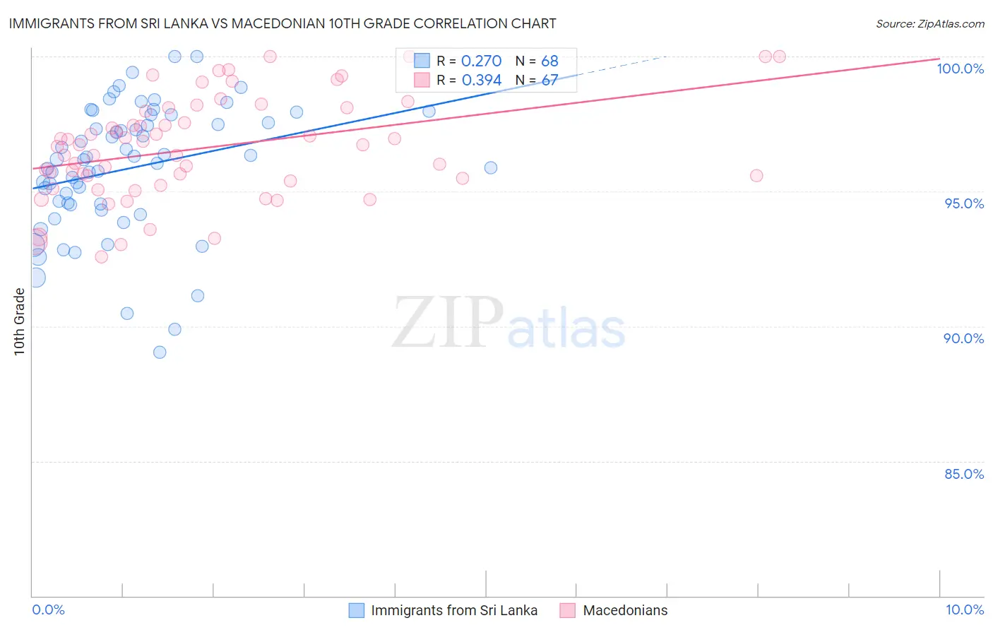 Immigrants from Sri Lanka vs Macedonian 10th Grade Correlation Chart