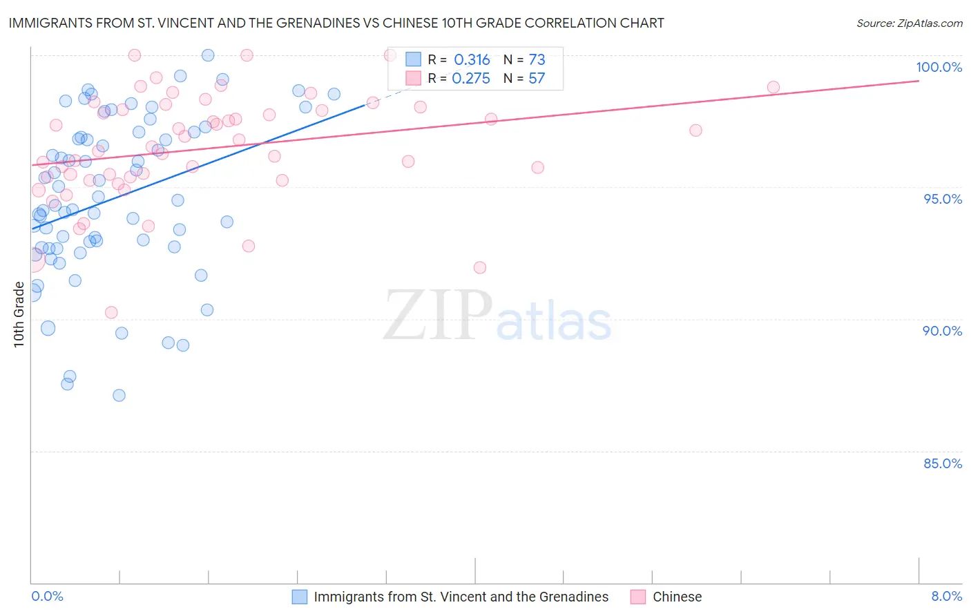 Immigrants from St. Vincent and the Grenadines vs Chinese 10th Grade Correlation Chart