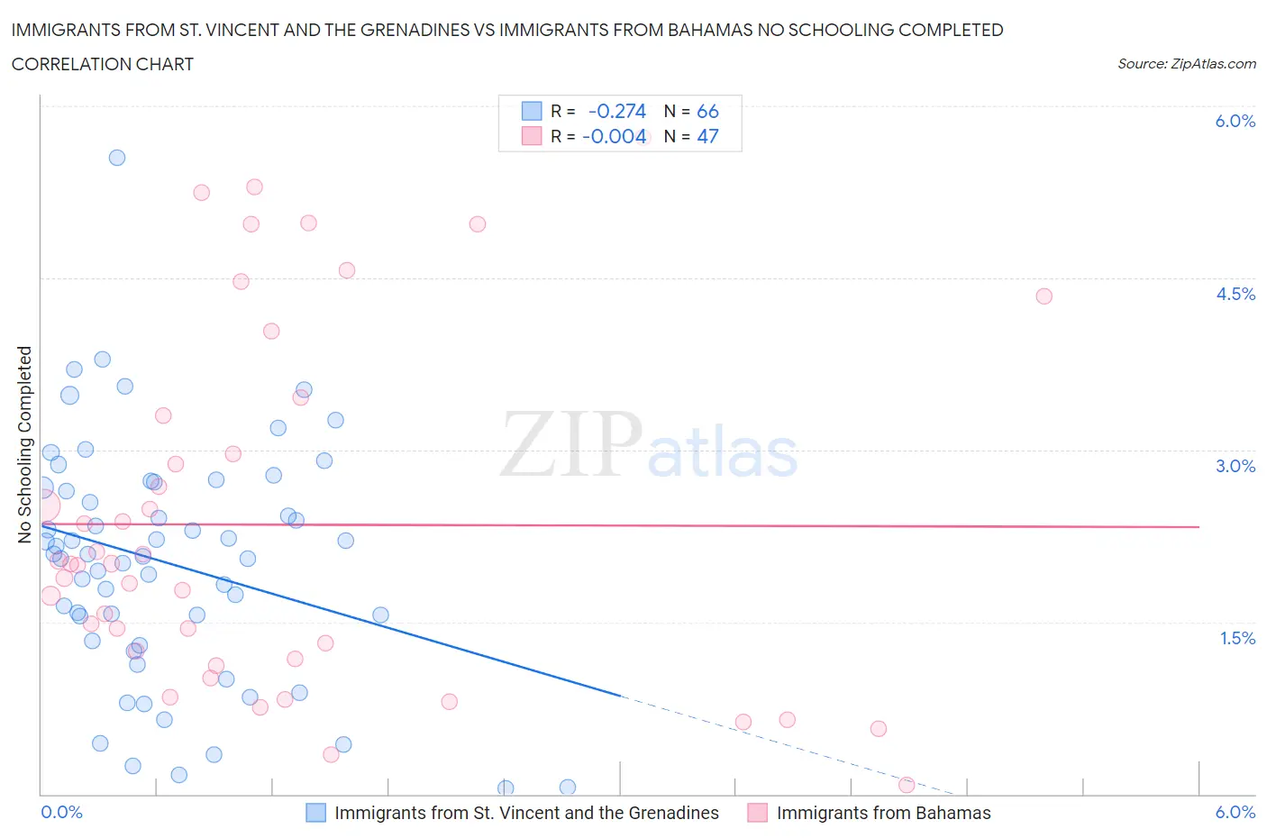 Immigrants from St. Vincent and the Grenadines vs Immigrants from Bahamas No Schooling Completed