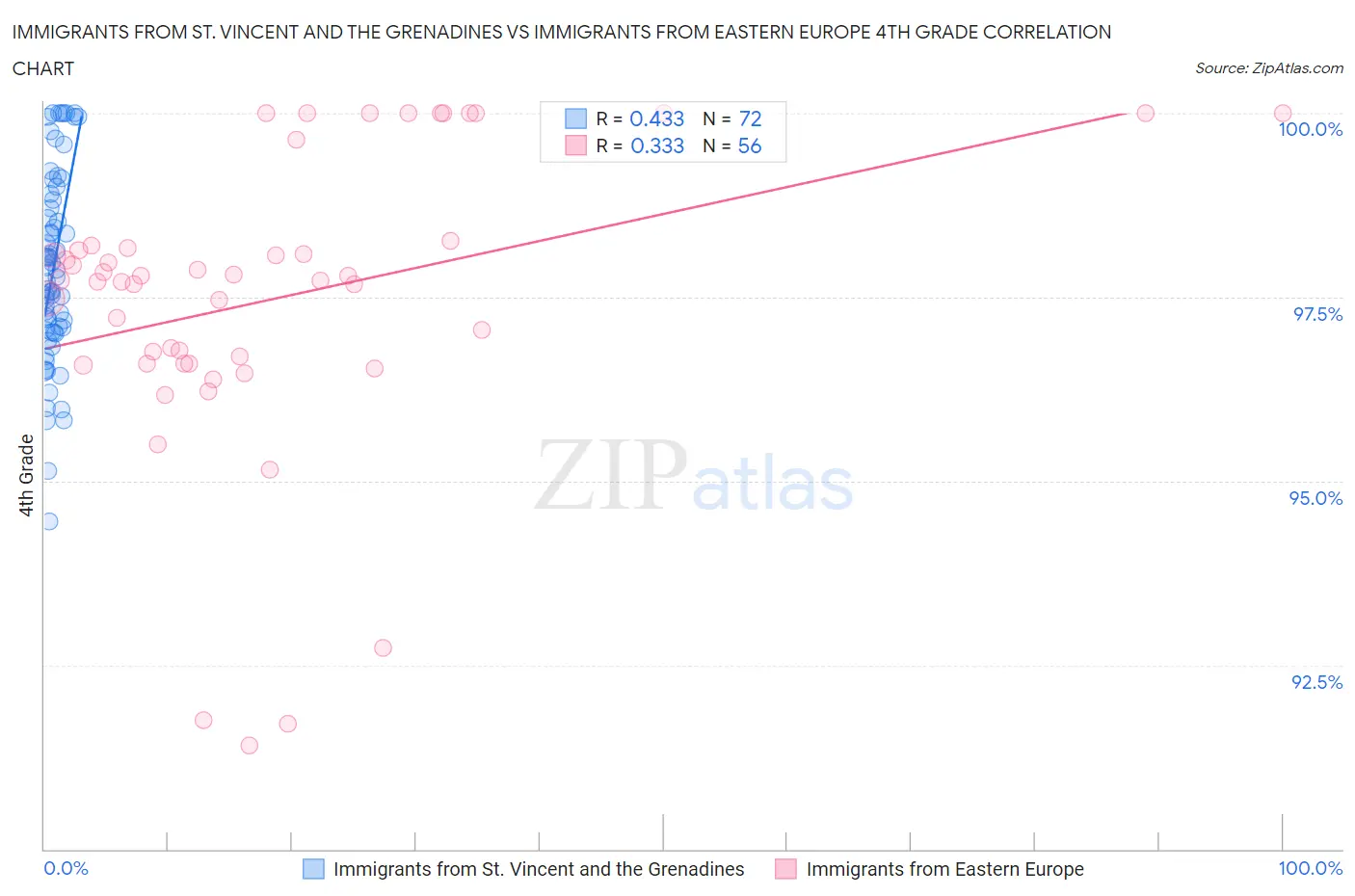 Immigrants from St. Vincent and the Grenadines vs Immigrants from Eastern Europe 4th Grade Correlation Chart